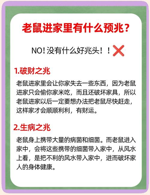 老鼠進(jìn)屋,吉兇難測,但不用太擔心。只要及時(shí)采取措施趕走老鼠,就能化解災難,轉危為安。一旦發(fā)現老鼠進(jìn)屋,不要驚慌,不要迷信,冷靜應對,這樣才能變成好運。