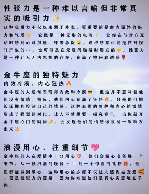 金牛座在情感上較為保守,追求穩定而長(cháng)久的伴侶關(guān)系。他們忠誠可靠,對愛(ài)人充滿(mǎn)耐心和體貼。然而,金牛座也可能表現出固執和占有欲,需要給予他們足夠的空間和尊重。
