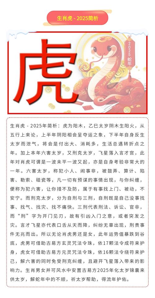 生肖虎今年運勢總體而言屬于吉兇參半,有吉有兇。生肖虎在今年要抓住機遇,努力拼搏,同時(shí)也要注意防范風(fēng)險,低調謹慎,才能化解兇險,轉危為安。