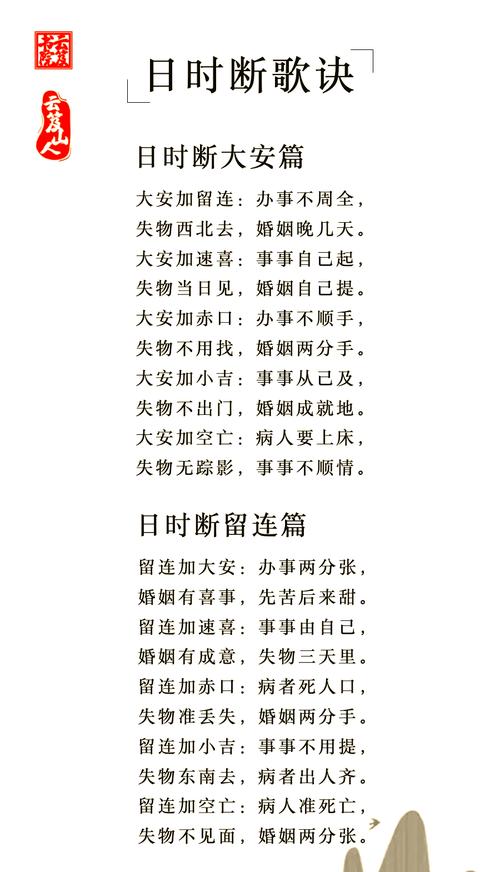 古人云:“吉人自有天相,兇人自有天災?!边@說(shuō)明了時(shí)間斷吉兇法的重要性。時(shí)間斷吉兇法,就是根據一個(gè)人的出生時(shí)間,來(lái)判斷其運勢的好壞。通過(guò)分析一個(gè)人的出生年月日時(shí),我們可以推算出其一生的運勢走向,以及需要注意的關(guān)鍵時(shí)期。
