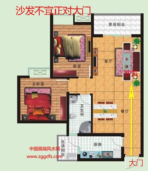 3. 穿心煞:這種布局容易形成“穿心煞”,對家庭財運和健康運不利??梢酝ㄟ^(guò)設置屏風(fēng)、玄關(guān)或擺放綠色植物來(lái)化解。