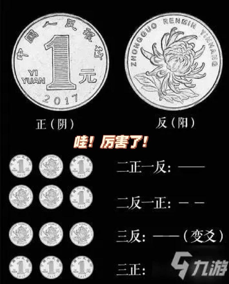 硬幣推算法,也稱(chēng)錢(qián)卜,是一種古代民間流行的占卜方法,以硬幣的正面(陽(yáng))或反面(陰)來(lái)判斷命運吉兇。