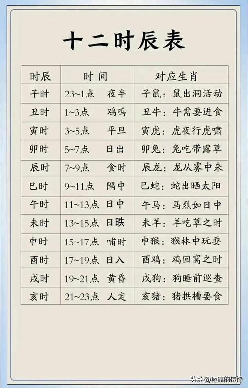 辰時(shí):辰時(shí),龍騰虎躍,生機盎然。辰時(shí)出生的人,往往精力充沛,做事雷厲風(fēng)行。吉時(shí):9:00-11:00,宜結婚;兇時(shí):11:00-13:00,忌出行。