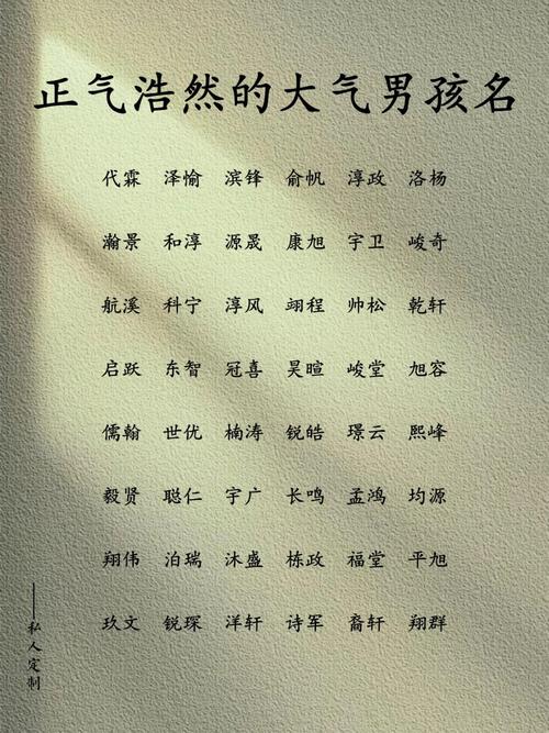 具有美好祝愿的名字: 可以選擇一些寓意吉祥、幸福的字,例如“澤”、“瑞”、“錦”、“程”等。例如,浩然澤,寓意著(zhù)恩澤廣布,造福社會(huì );浩然瑞,則象征著(zhù)祥瑞降臨,一生平安順遂。此類(lèi)配對名字側重于為孩子賦予美好的祝愿,希望其一生幸福安康。