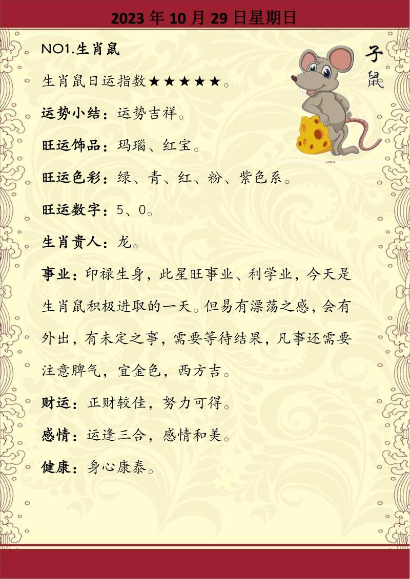 水局滋潤,身體健康。屬鼠人精神狀態(tài)佳,活力充沛。但需注意腸胃疾病,飲食宜清淡。