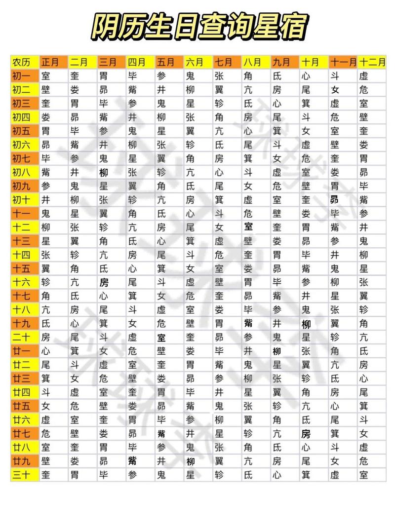 1. 確定當日星宿:需要確定當天對應的星宿。黃歷上通常會(huì )標注當天的星宿值日,例如“角宿”、“亢宿”等。